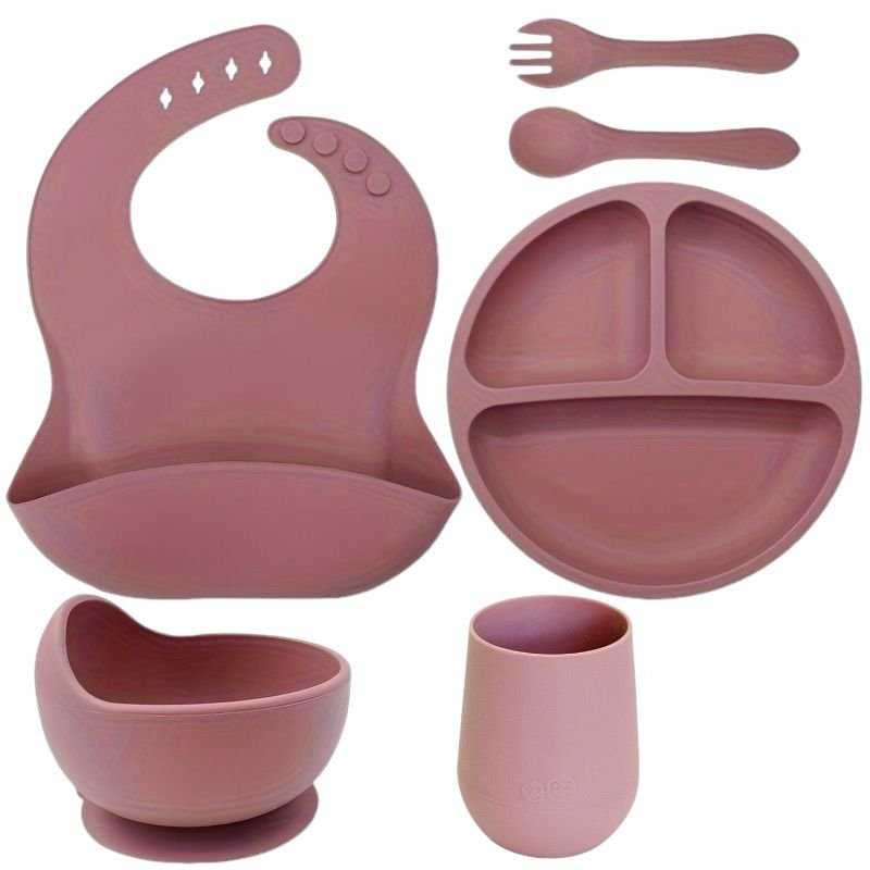 El Set de Vajilla en Silicona para Beb s est dise ado para hacer de la alimentaci n complementaria un proceso f cil seguro y divertido Con seis piezas esenciales plato bowl vaso cuchara tenedor y babero este set es perfecto para los primeros pasos de tu beb en la alimentaci n aut noma Hecho de silicona de alta calidad y libre de BPA garantiza seguridad total en cada bocado Adem s su dise o antideslizante y f cil de limpiar lo convierte en una opci n pr ctica y duradera para el d a a d a Caracter sticas Material 100 Silicona Libre de BPA Totalmente seguro para el beb sin sustancias t xicas Antideslizante Las bases de las piezas aseguran que se mantengan firmemente en su lugar evitando derrames F cil de Limpiar Resistente y f cil de lavar a mano o en lavavajillas No retiene manchas ni olores Dise o Ergon mico y Funcional Las piezas est n pensadas para adaptarse a las manos peque as del beb y facilitar su aprendizaje de la alimentaci n Colores Modernos Disponible en tonos rosado claro rosado fuerte verde marr n y gris Set Incluye 1 plato 1 bowl 1 vaso 1 cuchara 1 tenedor y 1 babero ideal para todas las necesidades de la alimentaci n diaria Este set es el complemento perfecto para cada etapa del crecimiento y desarrollo de tu beb